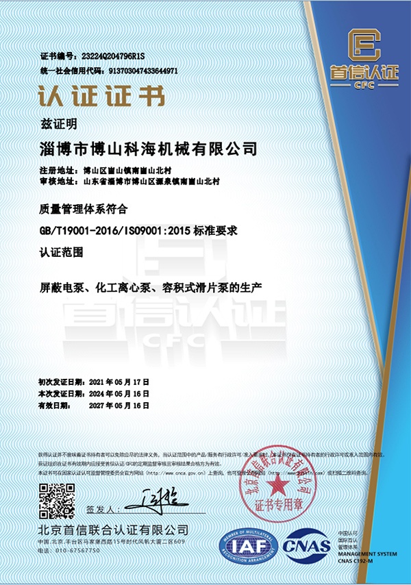 ISO9001質(zhì)量認(rèn)證體系認(rèn)證·多年專注于耐酸泵化工泵生產(chǎn)制造